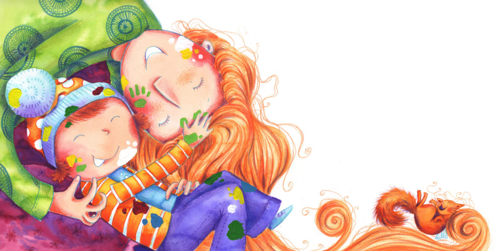Pour ce qui est du style de dessin, ce fut pas mal d’expériences et de recherches durant les études, où petit à petit, le style s’est forgé. J’ai été inspirée, par exemple, pour le trait à l’encre entourant la couleur, par une carte de voeux réalisée par une collègue de mon école, qui travaille dans la même agence (l’artiste Joëlle Dreidemy). Pour la couleurs, par les nombreux croquis d’aquarelles que nous faisions lors de nos études, et les mélanges de couleurs « accidentels ». Mon style s’est ensuite vraiment créé lors de mes recherches pour mon premier album jeunesse (mon diplôme), puis s’est ensuite un peu modifié au fil du temps.