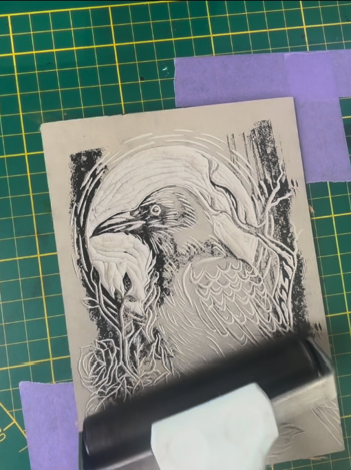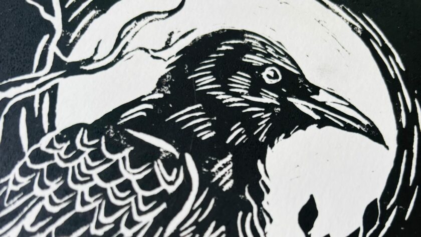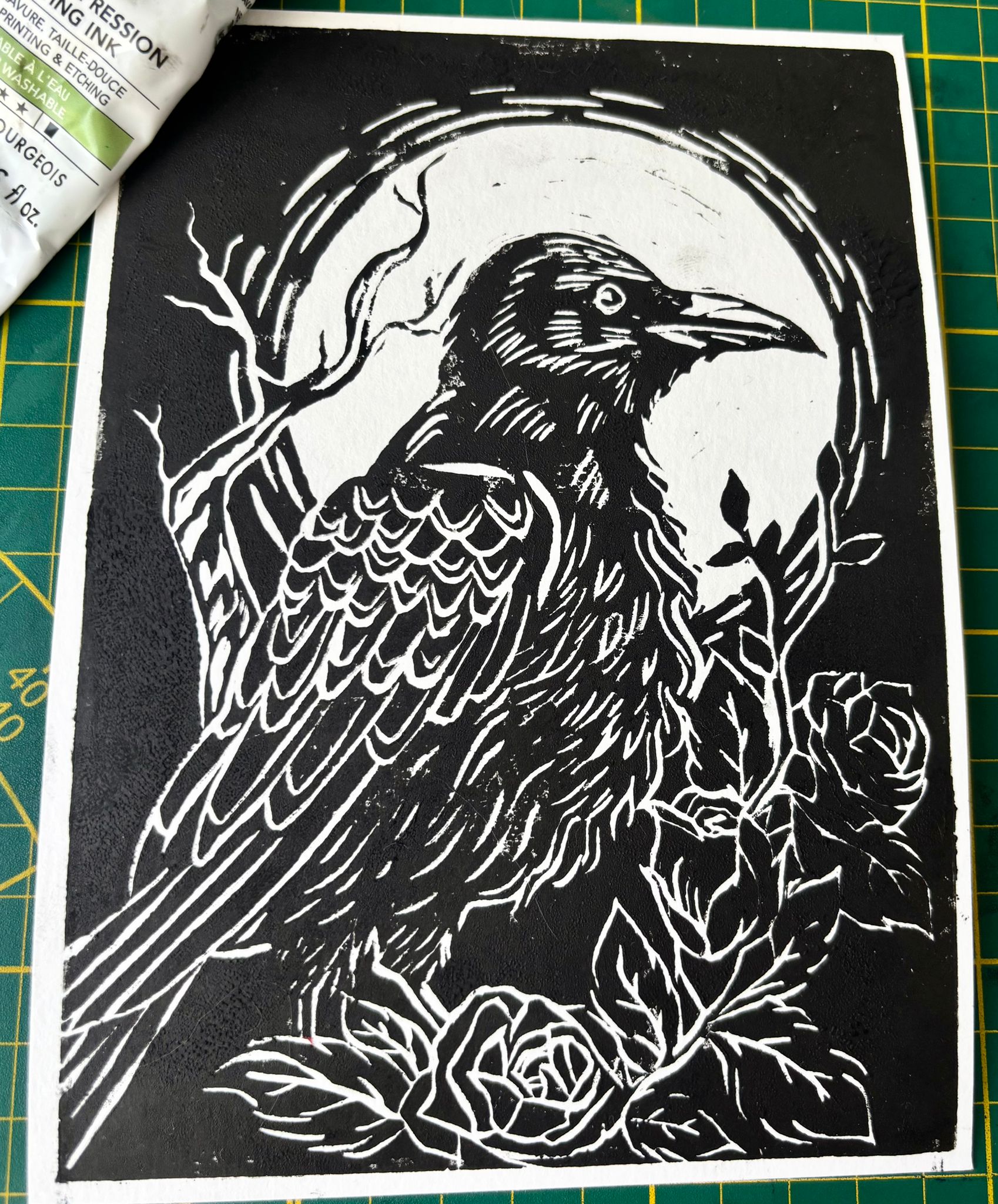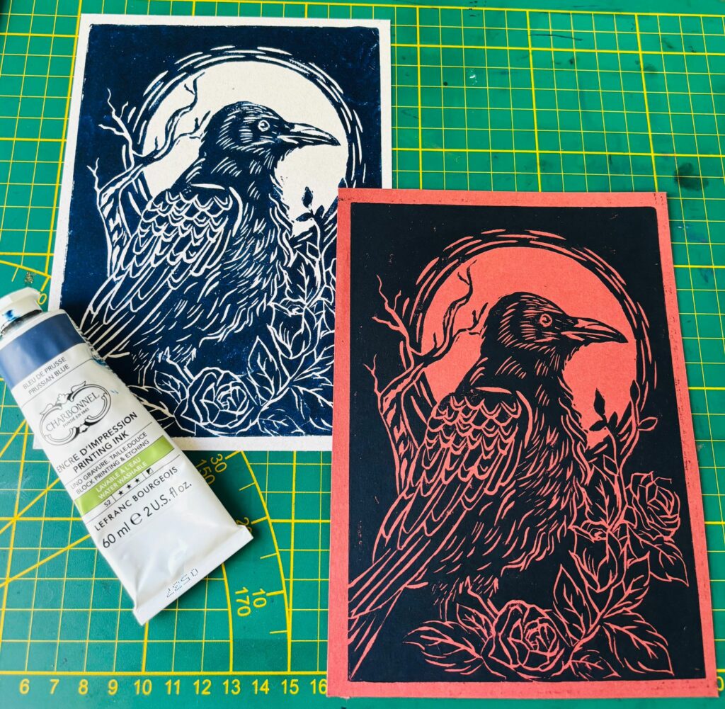 Matériel nécessaire pour votre linogravure corbeau pour Halloween