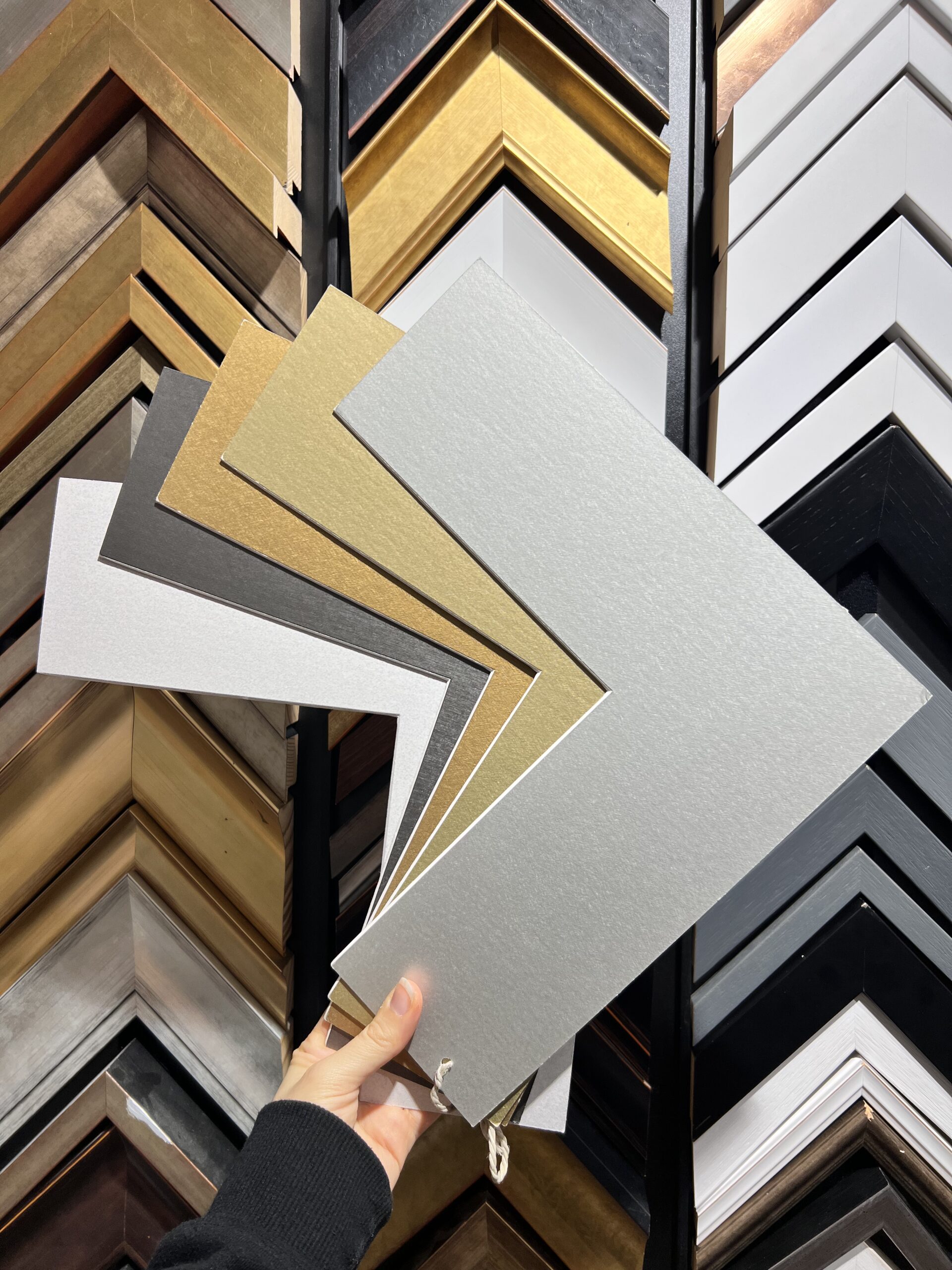 Le passe‑partout crée un espace entre l’œuvre et le verre, protégeant la création de l’humidité, des traces ou du contact direct. Il joue aussi un rôle esthétique crucial. Sa couleur et son ouverture doivent être sélectionnées selon le style de l’œuvre et son format. Cette étape est importante dans tout encadrement sur mesure pour obtenir un résultat harmonieux et équilibré.