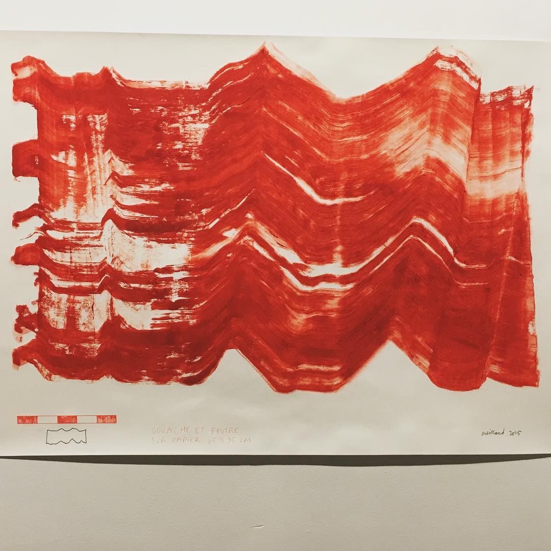 « Je fabrique un outil fait de couleur et de gouache que je promène ensuite sur un papier humide. Cette esthétique de la trajectoire, loin d’être une vision personelle ou figée, inclut le spectateur et lui ouvre une porte sur l’émotion et le sentiment d’une danse sans cesse réinventée.