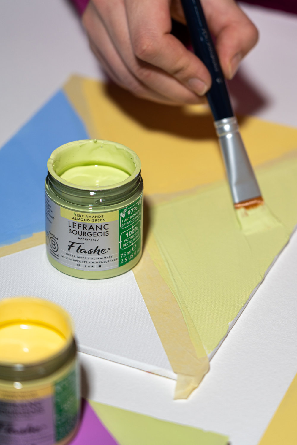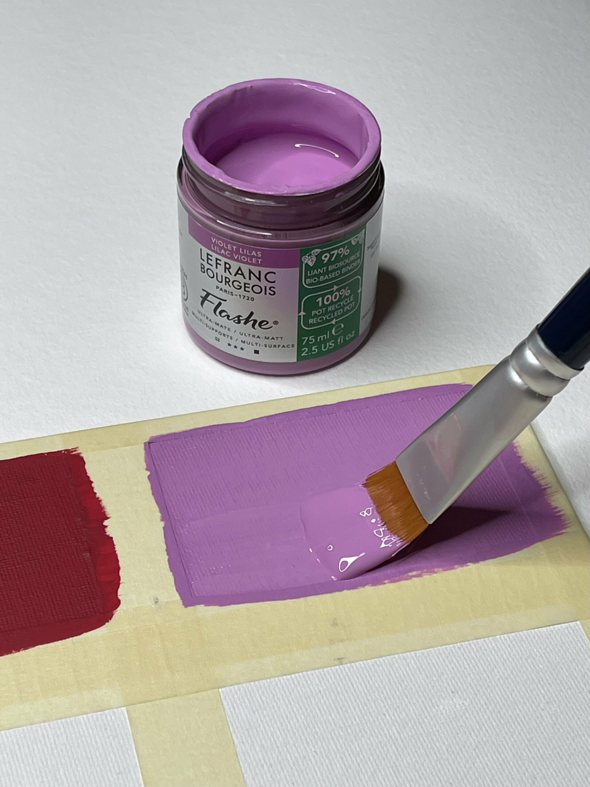 Tout d’abord, cette peinture conserve l’ADN de la Flashe originale. Elle reste donc extra-fine, ultra-mate et parfaitement opaque. Par ailleurs, elle s’utilise sur de nombreux supports : bois, toile, papier, métal, verre ou céramique.