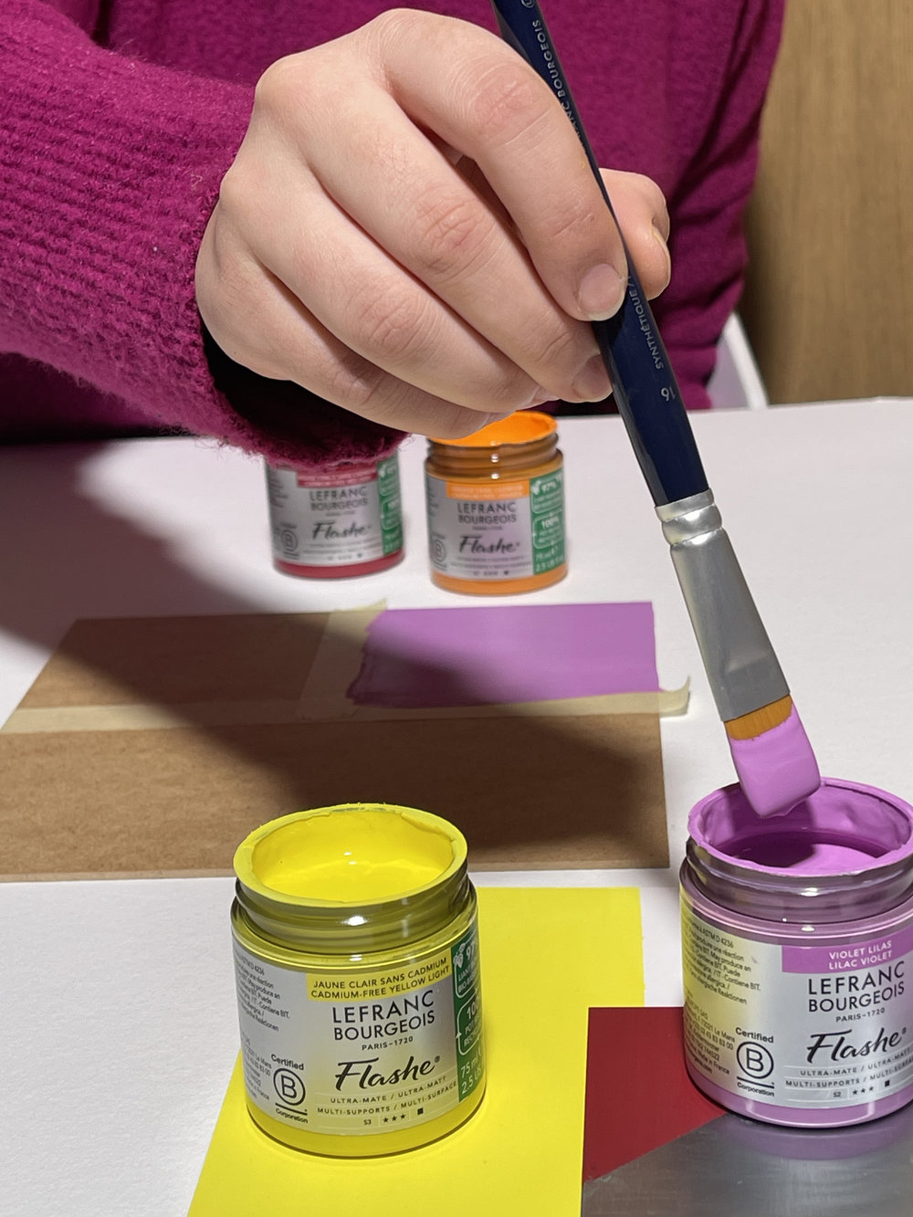 Par conséquent, la peinture Lefranc Bourgeois Flashe s’impose comme un médium professionnel, apprécié pour ses aplats nets, son rendu ultra-mat et sa stabilité dans le temps.