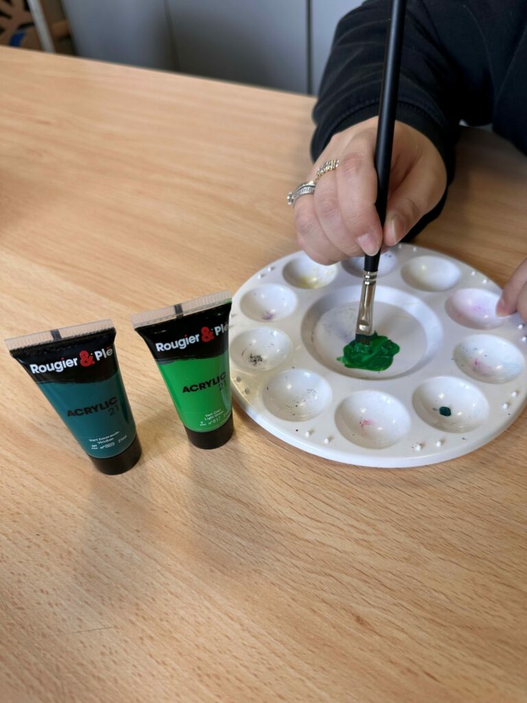 - Peinture Acrylique Rougier & Plé ( 869 – Vert Emeraude, 817 -Vert Clair, 641 – Orange)
