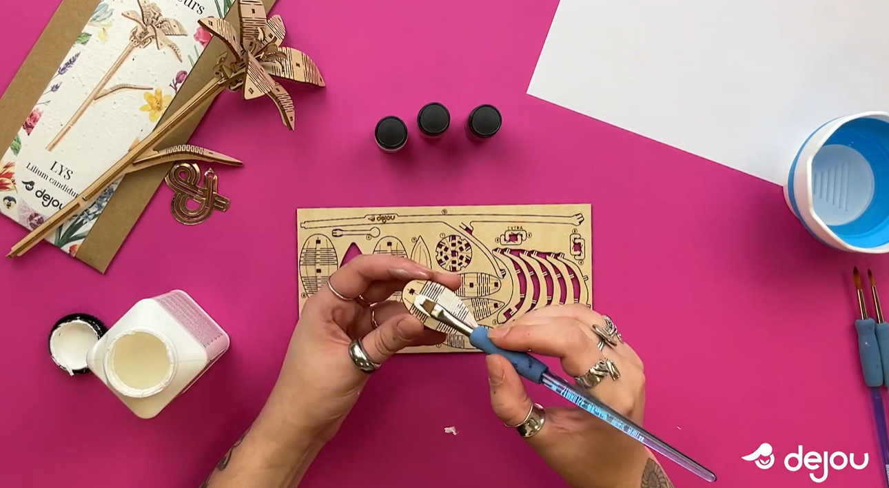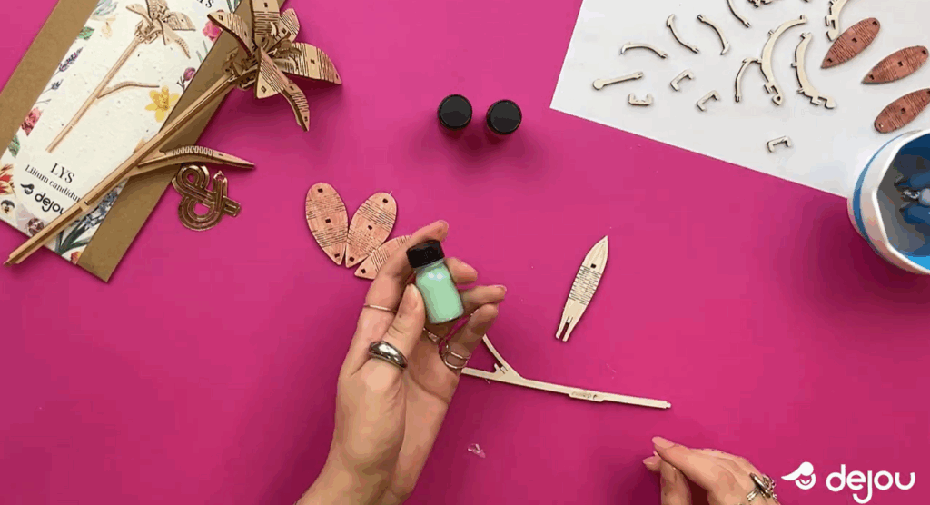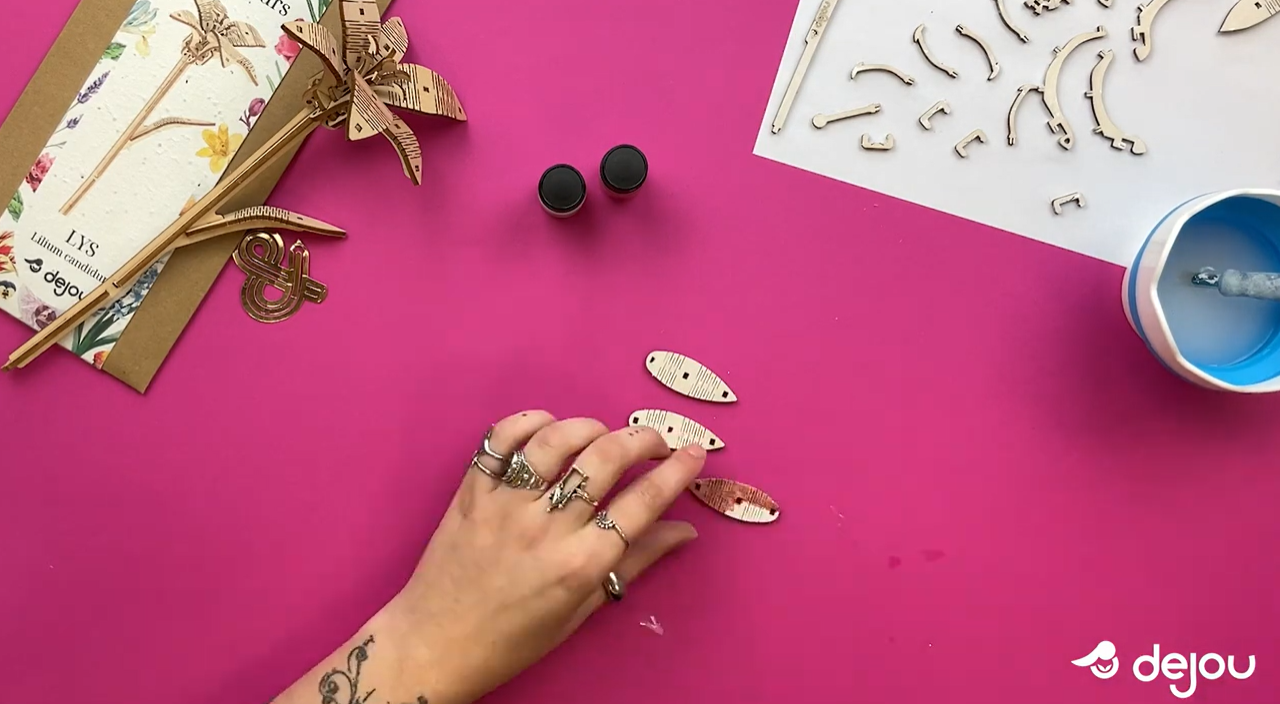 Lorsque toute la peinture est sèche, assemblez votre fleur en suivant la notice fournie ou la vidéo de montage.