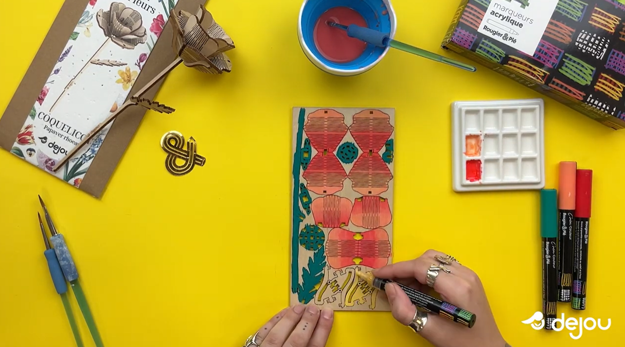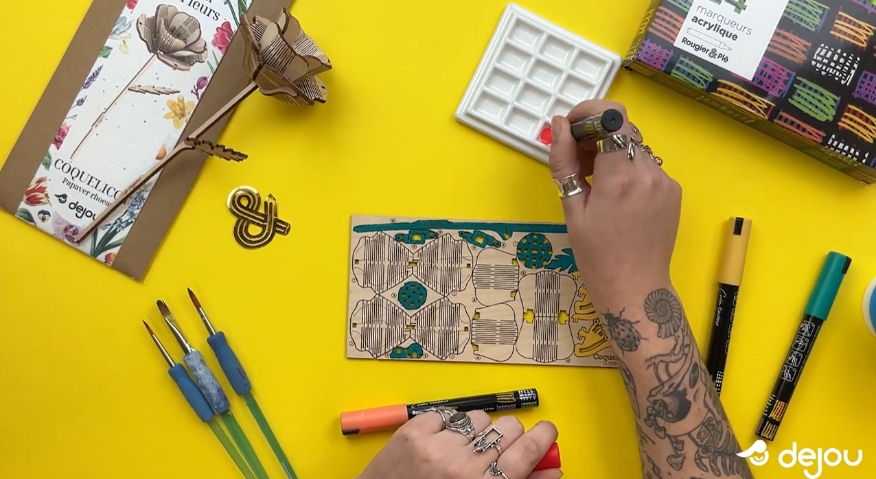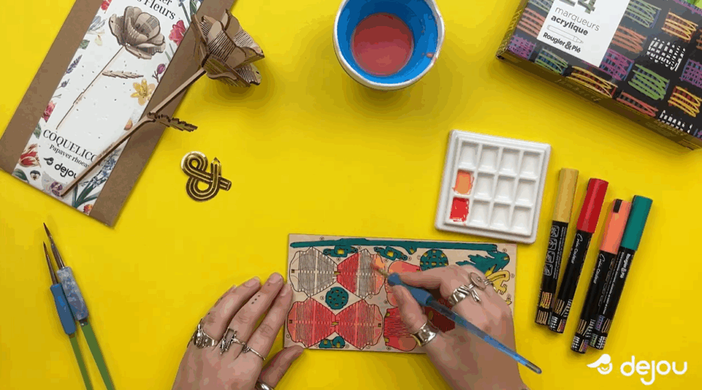 La décoration fleur en bois devient simple et créative grâce à l’atelier des fleurs Dejou. Aujourd’hui, nous allons customiser un coquelicot à l’aide de marqueurs acryliques. Ce tutoriel pas à pas vous permettra d’obtenir une fleur colorée, harmonieuse et prête à être exposée.