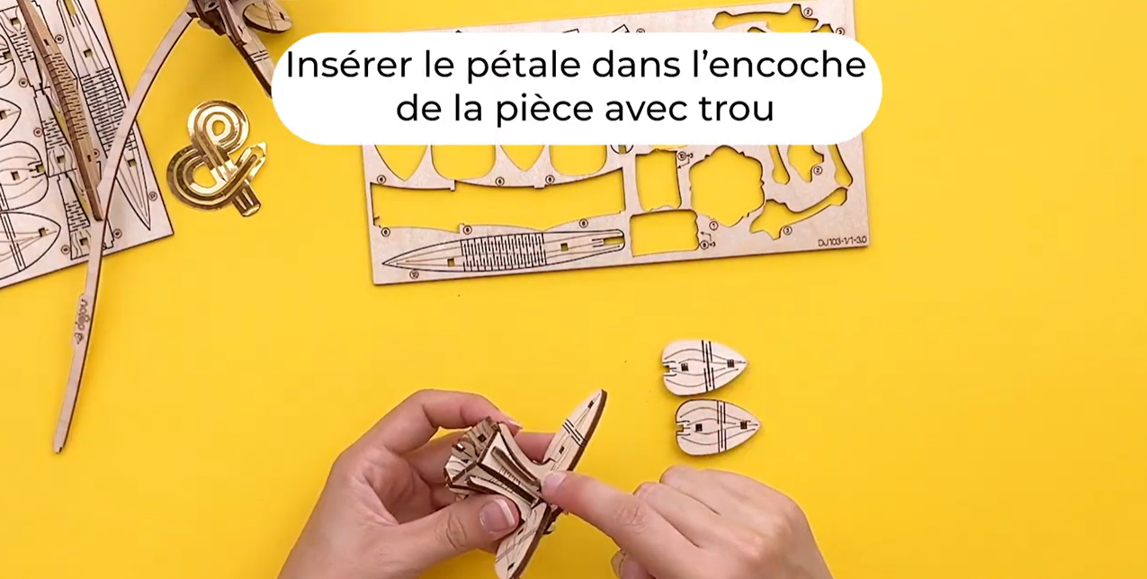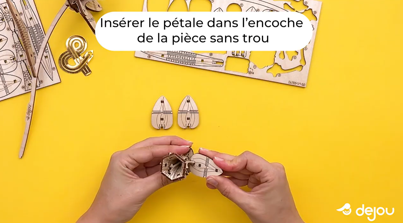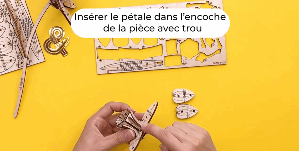 Insérer le pétale dans l’encoche de la pièce avec trou.