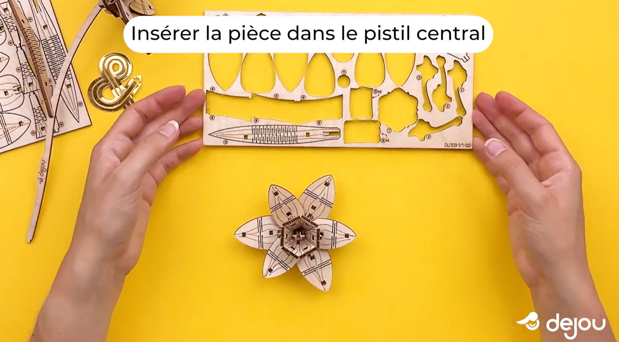 Détacher la pièce numéro 11, puis l’insérer dans le pistil central.