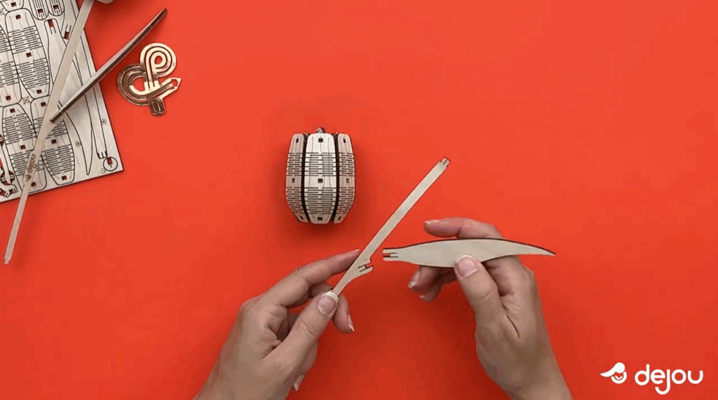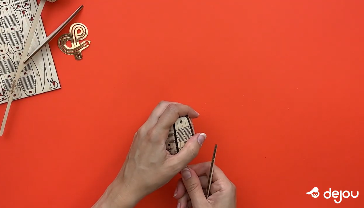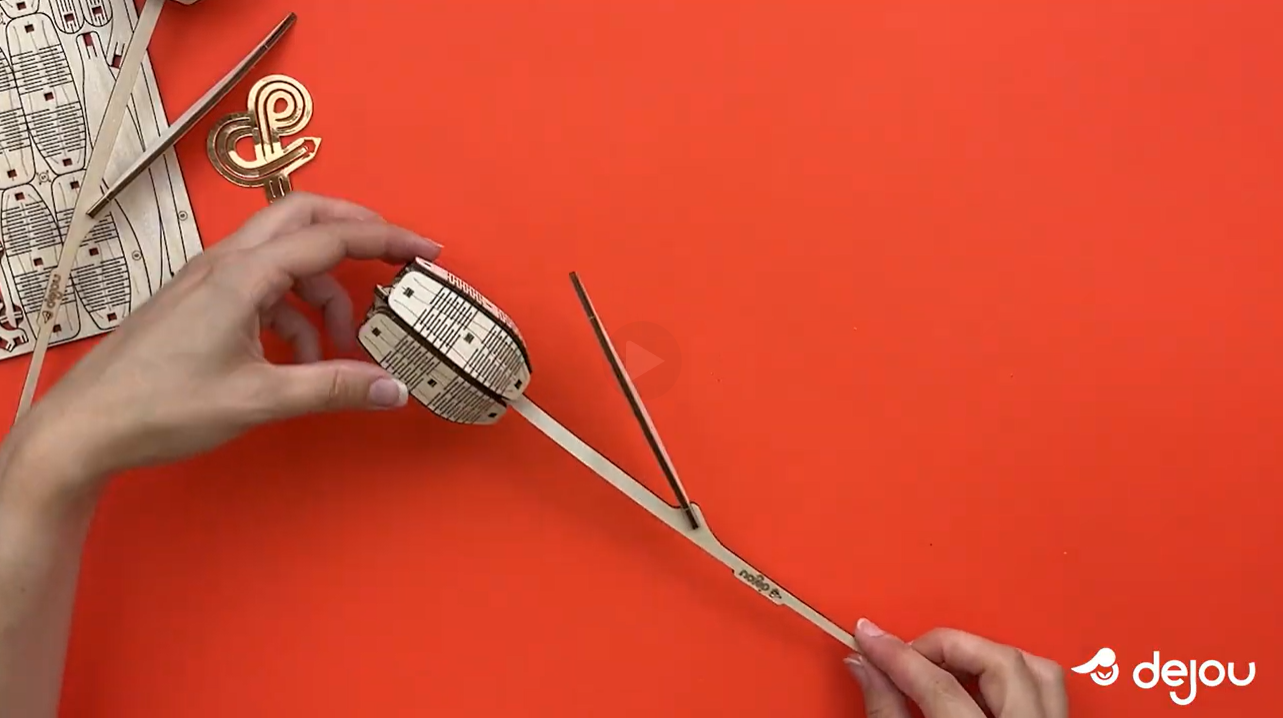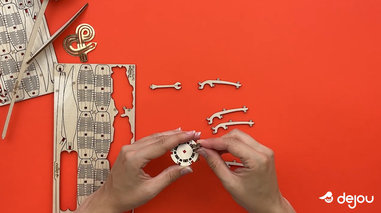 Une fois en place, clipsez ensuite les pétales de la fleur en bois dans l’encoche située sur leur partie supérieure.