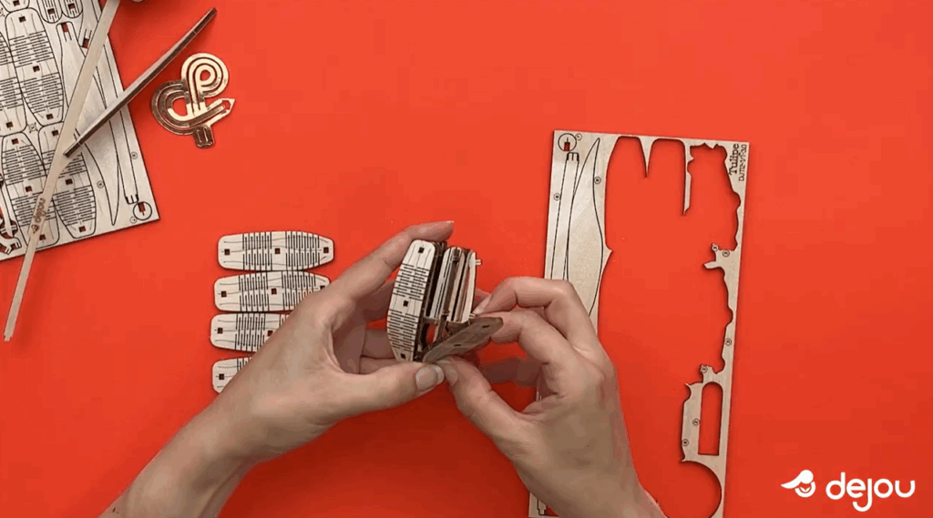 Clipser d’abord la pièce n°4 au centre, puis insérez la pièce n°6 à son tour.