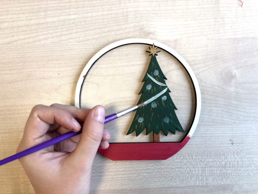 Si votre boule comprend un petit sapin gravé, ajoutez des touches décoratives avec la peinture. Guirlandes, boules et étoiles rendront ainsi la scène plus réaliste et festive. Ces détails subtils feront la différence et attireront tous les regards.