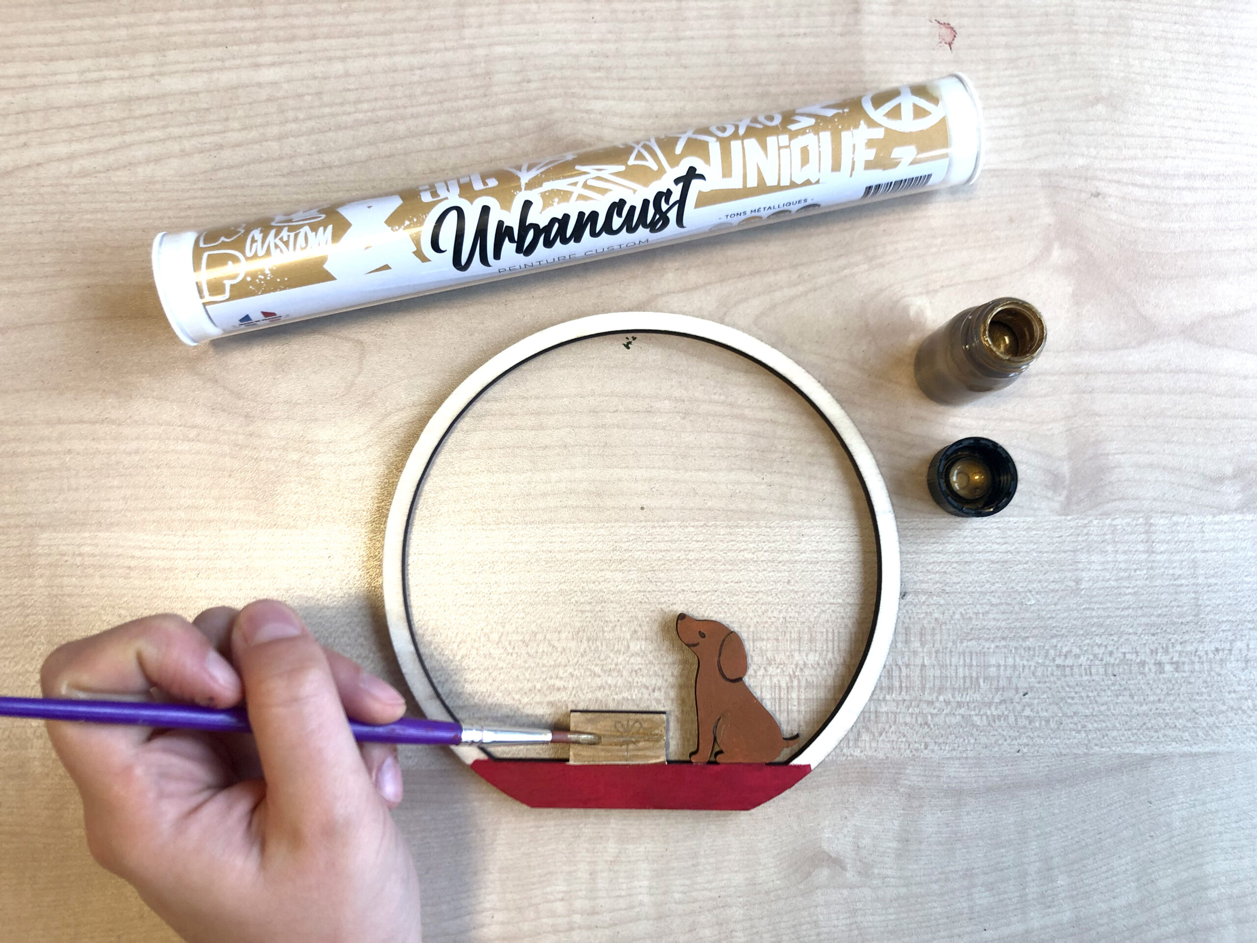 Utilisez le kit de peinture métallique Urbancust pour illuminer certaines parties de la boule. Le doré ou bien l’argenté apportera un éclat raffiné et mettra en valeur le relief du bois, créant un effet sophistiqué.